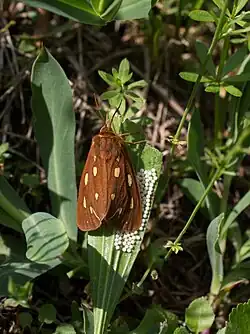 Die etwa zehn Tage nach der Eiablage schlüpfenden Raupen sind durch ihr geringes Gewicht und ihre langen Haare dem Wind ausgesetzt, der zur besseren Verbreitung der Tiere beiträgt. Die langen Haare schützen auch vor Fressfeinden. Tagsüber verstecken sie sich unter Blättern und zusätzlich in von ihnen gewobenen Gespinsten. Sie entwickeln sich sehr langsam und häuten sich im ersten Jahr sechs Mal.
