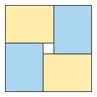 Die zweidimensionale Abwandlung des Packungsproblems fordert die Unterbringung von vier Rechtecken mit den unterschiedlichen Seitenlängen und in einem Quadrat der Seitenlänge . Das Problem ist immer lösbar und wird häufig zur Veranschaulichung der Ungleichung vom arithmetischen und geometrischen Mittel verwendet.