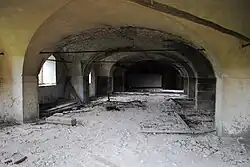 Obwohl auch der Schüttbau lediglich zur Vorratshaltung errichtet wurde, weist er mit den geohrten Fensterrahmungen und den profilierten Dachgesimsen repräsentative Merkmale auf. Alle drei oberirdischen Geschosse wurden mit zweischiffigem Kreuzgratgewölbe ausgestattet. In der Nordostecke entstand eine überwölbte zweiarmige Treppenanlage, die das Gebäude erschloss. Im Schüttbau nahm man in den folgenden Jahrhunderten weitere Veränderungen vor. So zog man dort Spannanker und Entlastungsgurte ein.