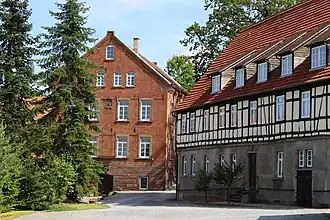 Gleich linkerhand der Haupteinfahrt befindet sich ein Wohnhaus. Es wurde 1825 im Biedermeierstil errichtet. Über dem gemauerten Kellersockel schließt sich ein Fachwerkaufbau an. Nach oben abgeschlossen ist das Gebäude durch ein Krüppelwalmdach.