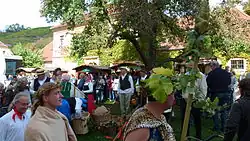 Am 25. Oktober 1840 fand ein großes bürgerliches Winzerfest mit dem Winzerumzug der Weinbau-Gesellschaft statt, der von der Hoflößnitz zum Gasthof Goldene Weintraube führte. Auf dem Fest wurden nicht nur ein Festmahl und Tanz geboten, sondern auch ein bengalisches Feuer auf den Berghöhen der Hoflößnitz und bei Cossebaude auf der anderen Elbseite. Dieser Winzerumzug ist der heute wohl bekannteste in Sachsen, da er von dem in der Oberlößnitz auf seinem Weingut Retzschgut ansässigen Maler Moritz Retzsch in einer Bilderreihe festgehalten und publiziert wurde. Die Bildvorlage von Retzsch beeinflusste alle folgenden Umzüge. Eine in den 1950er Jahren kolorierte Version der Retzsch’schen Bilderfolge[29] wird im Weinbaumuseum ausgestellt. Sie gab das Vorbild für die Winzerzüge ab 2011.[30]