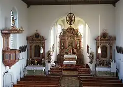 - Die Pfarrkirche St. Nikolaus ist ein barocker Neubau von 1710, der im Auftrag von Fürstbischof Johann Anton I. Knebel von Katzenelnbogen nach Plänen von Jakob Engel errichtet wurde, und 1896 durch einen neugotischen Neubau von Friedrich Niedermeier, Regensburg, ersetzt wurde. Mit der Restaurierung 1937/38 wurde die barocke Ausstattung des Vorgängerbaus wieder hergestellt. Bischof Otto von Eichstätt weihte hier zwischen 1182 und 1189 eine Vorgängerkirche, von der noch der Turm steht; über dem romanischen Unterbau erhebt sich ein barocker Aufbau des 18. Jahrhunderts mit Kuppel. Von den Holzfiguren im Innern ist ein spätgotisches Relief der Geburt Christi mit drei singenden Engeln erwähnenswert (um 1480). Der heilige Josef mit dem Jesuskind ist eine „edle Arbeit“ (Mader, Kunstdenkmäler) um 1780, eventuell von Joseph Anton Breitenauer. An der rechten Langhauswand hängt ein Renaissance-Kruzifix aus der Werkstatt von Loy Hering. Die barocke Kanzel wurde 1960 aus St. Sebasti, Ingolstadt, erworben. Auf dem Friedhof findet man einige Grabsteine der Rokokozeit und des Klassizismus.