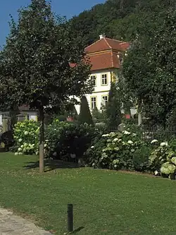 - Haus Nr. 1: Landschlösschen, zweigeschossiger Mansarddachbau, Sandsteingliederung, Zwerchhaus, 2. Hälfte 18. Jahrhundert; älteres Wohnhaus, Kern 16. Jahrhundert, Mansarddach 18. Jahrhundert; Fachwerkscheune, im Kern 16./17. Jahrhundert, Mansarddach 18. Jahrhundert[6]