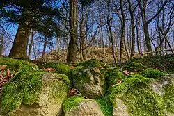 Auf dem Nordosthang wurde 1934 vom Turn- und Wintersport-Verein Adenau eine Skisprungschanze errichtet und nach drei schneearmen Wintern am 9. Januar 1938 eingeweiht.[9] Ihr K-Punkt lag bei 25 m. Silvester- und Neujahrsspringen wurden Tradition. Den Schanzenrekord sprang am 13. März 1955 der Bad Godesberger Karlheinz Buchholz mit 22,5 m.[9] Teilnehmer kamen aus Bad Neuenahr, Ahrweiler, Remagen, Niederbreisig, Brohl, Insul, Wershofen und Müllenbach. Die Schanze wurde 1980 aufgegeben. In manchen Wander- und topographischen Karten war sie noch über Jahre vermerkt.[10][11]