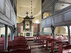 An beiden Längsseiten des Kirchenschiffs erstrecken sich zwei Emporen übereinander. Die unteren erhalten noch Licht aus den mit Segmentbögen abgeschlossenen Mauerfenstern, die oberen aus Mansardenfenstern. Die Orgel erstellte 1856 der Hannoveraner Orgelbauer Eduard Meyer (1806–1889).