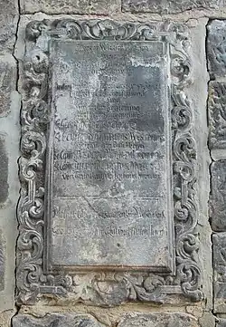 Bemerkenswert ist die Einfriedung des Grundstücks, die aus einem Rest der Stadtmauer besteht und eine barocke Inschriftentafel aus dem Jahr 1747 aufweist.