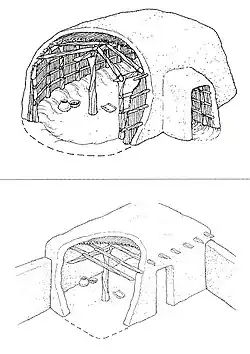 Die Siedlungen bestanden aus einem Kern von dicht zusammenstehenden Gebäuden und zerstreuten Häusern in der Peripherie. Das Zentrum gruppierte sich um große Plätze oder um Erdhügel mit einer Plattform auf der Oberseite. Die Bauten bestanden aus Grubenhäusern mit Wänden aus Flechtwerk und Lehmputz, ab etwa 1150 kamen auch Wände aus Adobe-Lehmziegeln auf.