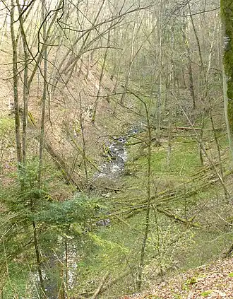 Der Hohteichbach in seiner Unterlaufklinge nahe der Mündung in die Schmerach | ||