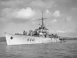 - ↑ Don Kindell: Convoy Escort Movements of Royal and Dominion Navy Vessels, River-Class Frigates, Part 2.