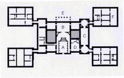 Ein Mezzaningeschoss, mit einer Reihe niedriger Fenstern oberhalb des Hauptgeschosses, wie es der palladianische Stil eigentlich vorschreibt, wurde verzichtet. Der Grund hierfür liegt in der Höhe der Räume im Piano Nobile, die doppelt so hoch sind wie die Zimmer vergleichbarer Gebäude. Auf Blindfenster, die die Strenge der Fassade hätten abmildern können, wurde ebenfalls verzichtet. Im Erdgeschoss sind die mit Rustikoarbeiten gestalteten Mauern von kleinen Fenstern durchbrochen, die jedoch eher an ein Gefängnis als an ein Schloss denken lassen. Den Architekturkritiker Nigel Nicolson erinnerte das Gebäude denn wegen seiner funktionalen Anmutung an „eine preußische Reitschule.“