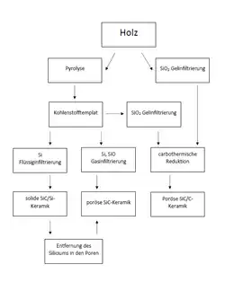 - ↑ a b c d e f g h J. Ramirez-Rico, J. Martinez-Fernandez, M. Singh: Biomorphic ceramics from wood-derived precursors. In: International Materials Reviews. Band 62, Nr. 8, 2017, S. 465–485.