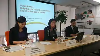 - ↑ Staff Writer, with CNA: Hong Kong trade council to set up office in Taipei. In: taipeitimes.co. 18. Oktober 2008, abgerufen am 4. September 2020 (englisch).