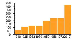 | Jahr | 1910 | 1925 | 1933 | 1939 | 1950 | 1956 | 1973 | 2017 |