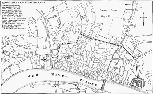 - Andrew John Gurr: The Shakespearean Stage 1574–1642. Dritte Ausgabe, Cambridge University Press, Cambridge 1992.