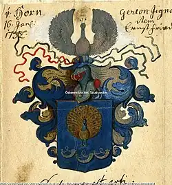 - Österreichisches Staatsarchiv, AT-OeStA/AVA Adel RAA 199.11 Horn, Gereon Ignaz von, Obersteueramtsassessor des Eichsfelds (Erzstift Mainz), Adelsbestätigung als rittermäßiger Adelsstand, „von“, privilegium denominandi, 1732.01.16.