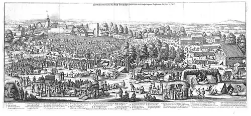 Ein weiterer Gast im selben Jahr war Matthäus Merian, der das berühmt gewordene Dorf in seinem zeitgeschichtlichen Sammelwerk „Theatrum Europaeum“ nicht übergehen konnte. Für Band 5 fertigte er eine Dorfansicht als Kupferstich. Diese Kupfertafel von 1646 ist von kulturgeschichtlicher Bedeutung, denn sie zeigt die weltweit erste gedruckte bildliche Darstellung einer Buchhändlerin mit einem Bücherstand.