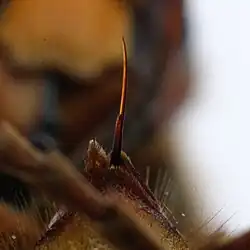 Auf der Schmerzskala des amerikanischen Entomologen Justin Orvel Schmidt (Schmidt Sting Pain Index) wird der Hornissenstich mit 2,0 und damit gleich dem Stich der gewöhnlichen Wespen (Vespa) und der Honigbiene angegeben.[27] Im Gegensatz zu Wespen, die oft gezielt Menschen anfliegen und in ungünstigen Situationen auch unprovoziert stechen können, sind Hornissenstiche selten; sie treten beinahe ausschließlich bei unvorsichtiger Annäherung an das Nest auf.