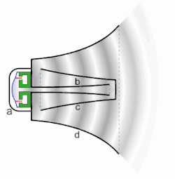 Viele Klassiker der Hornlautsprecher arbeiten nach diesem Verfahren. Das Exponentialhorn unterstellt, dass sich der Schall im Horn als ebene Welle ausbreitet und sich auch so vom Hornmund löst.