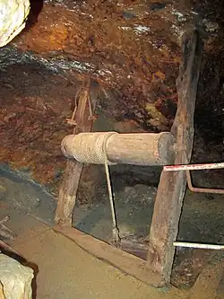 Im vorindustriellen Bergbau wurde mit abgesetzten Schächten von den tieferen Sohlen gefördert, denn die Förderhöhe eines Handhaspels betrug nur etwa 30–50 Meter. Die Schächte folgten in der Regel dem Einfallen des Ganges, sie waren tonnlägig. Die horizontalen Grubenbaue, wie Stollen oder Gezeugstrecken, wurden mit Schlägel und Eisen nur im Minimalprofil ausgehauen, welches nicht ausreichte, um einen Haspel einzubauen, an diesem vorbei Streckenförderung zu betreiben und Arbeitsraum für die Haspelknechte zur Verfügung zu stellen. Aus diesem Grunde wurde im Bereich des Haspels eine Weitung geschaffen, die Hornstatt.[2][3]