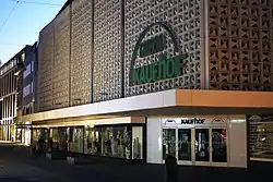 Gebäude des Kaufhauses Horten in Trier, Fleischstraße (später: Galeria Kaufhof), mit typischer Fassade aus Hortenkacheln
