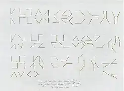 Hortensias Arbeiten zugrunde liegt die konsequente Anwendung des von ihr selbst in dieser Klarheit entwickelten Bildnerischen Alphabets. „Die bewusste Verwendung des bildnerischen Alphabets, als Zusammenfassung von 24 Winkelverbindungen aus Kombination einer senkrechten, waagrechten oder schrägen Linie, wird bei ihr zu einem Zeichenverfahren für das Erfassen gegebenen Raumes.“[9] Somit sind diese Bildzeichen eine Art Schrift zur Umsetzung von anschaulicher Realität in das Bildwerk. Das bildnerische Alphabet wurde in dem Buch Hortensia – Form und Raum (2014)[12] dokumentiert.