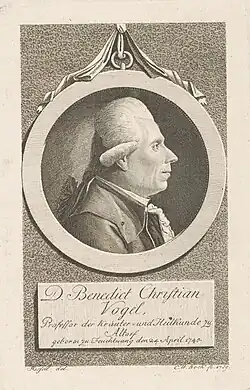 Benedict Christian Vogel war Professur der Arzneikunde und Botanik und verfasste als Präfekt 1790 den letzten Inventarkatalog des Gartens.[4][14] Rund 2.500 Exoten enthielt sein Pflanzenverzeichnis mit dem Namen Index plantarum horti medici Ältorfinexclusis indigenis vulgatiorihus.[14]