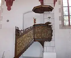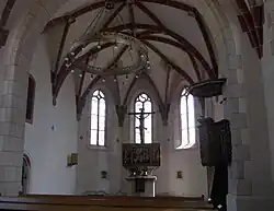 Aus der Bauzeit sind eine geschnitzte und farbig gefasste Kreuzigungsgruppe und ein lebensgroßer Kruzifixus mit wehendem Lendentuch erhalten.