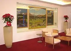 Das Triptychon war 1904 von Direktor Walther bei Giovanni Giacometti für die Eröffnung und Dekoration des Casinos in Auftrag gegeben worden. Anlässlich der ersten Renovierung des Pavillons wurde das Bild abgehängt und mal hier, mal dort ausgestellt. Zuletzt hing es in der Eingangshalle des Pavillons.