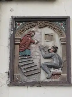 Der Gerichtsvogt Gerdt Heindrich Meuschen baute 1690 an der Bierstraße ein dreigeschossiges giebelständiges Fachwerkhaus. Die Giebelgeschosse im Satteldach sind wie das zweite Obergeschoss vorkragend. Über dem Eingangsportal ist das ehemalige Einfahrtstor mit Rundbogenabschluss gerahmt von Lorbeerblattwulst, in den Bogenzwickeln Akanthusranken und jeweils eine sitzenden Putte mit Spruchband.[1] Im Bogenscheitel ließ Meuschen ein Medaillon mit Inschrift anbringen, daneben die Familienwappen des Erbauers und seiner Frau Susanne Gertraud, gebürtig von Lengerken. Die Knaggen oberhalb des Rundbogentores sind geschmückt mit geschnitzten Figuren die Jesus Christus (mittig) und die Evangelisten Matthäus, Markus, Lukas und Johannes darstellen. Der hintere Gebäudeteil war als Steinwerk ausgelegt.