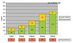 Zur Vergabe der Sterne der Deutschen Hotelklassifizierung gelten definierte Mindestvoraussetzungen.[9] Es gilt das Prinzip: Je mehr Sterne, desto mehr Merkmale müssen vom Hotel beziehungsweise dem Beherbergungsbetrieb erfüllt sein. Dabei wird zwischen Mindestkriterien und fakultativen Merkmalen unterschieden. Die Mindestkriterien sind von jedem Betrieb für die jeweilige Kategorie zu erfüllen. Mit den fakultativen Kriterien hingegen können die Betriebe zusätzliche Punkte sammeln, sie sind nicht verpflichtend für eine Kategorie vorgeschrieben.[10] Überschreitet ein Betrieb die vorgegebene Mindestpunktzahl für eine Kategorie deutlich, ohne jedoch die Mindestkriterien der nächsthöheren Kategorie zu erfüllen, so darf er den Zusatz „Superior“ führen.[11]
