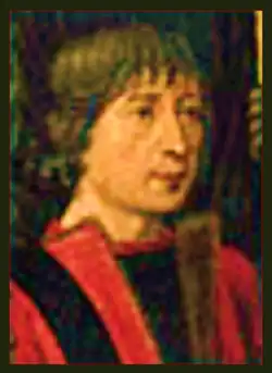 - ↑ Gegen Ende der 1480er Jahre beauftragte das Ehepaar einen unbekannten Künstler, das in ihrem Besitz befindliche, um 1479 entstandene Marienbild des Hugo van der Goes zu einem kleinen Klappaltar zu erweitern. Das Triptychon befindet sich im Frankfurter Städel Museum.