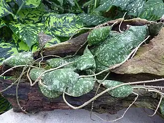 Hoya imbricata, Laubblätter und Sprossachsen | ||||||||||||