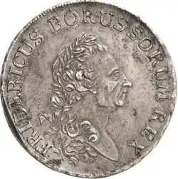 Die Vorderseite zeigt das Porträt Friedrichs des Großen mit Greisenantlitz nach rechts und Lorbeerkranz. Die Umschrift lautet FRIDERICUS BORUSSORUM REX (Friedrich König der Preußen.)