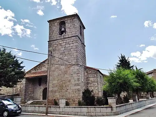 - Die Iglesia de San Juan Bautista ist ein Bau des 16. Jahrhunderts; der aus exakt behauenen Steinen errichtete Glockenturm (campanero) scheint etwas später angebaut worden zu sein. Zwei durch Vorbauten geschützte Eingänge befinden sich im Westen und auf der Südseite. Das durch zwei Arkaden unterteilte Kirchenschiff wird von einem hölzernen Dachstuhl überspannt; Chor und Apsis haben eine Artesonado-Decke. Die Kirche bewahrt einen romanischen Taufstein aus der Vorgängerkirche.[6]