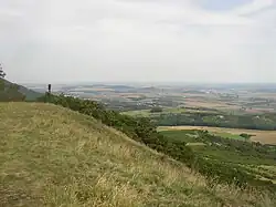 Vor allem in südliche Richtung ist eine weite Aussicht vom Gipfel über die weite Elbniederung und zu den Bergen des südlichen Böhmischen Mittelgebirges möglich. Markante Erhebungen im Blickfeld sind vor allem Radobýl (Radobil), Hazmburk (Hasenburg) und Lovoš (Lobosch). Im Vordergrund fällt der Blick über die ausgedehnte Bebauung der alten Bischofsstadt Litoměřice.