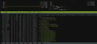 htop ist ein freier Prozessmanager für unixoide Systeme, welcher eine dynamische Übersicht laufender Prozesse und freier/belegter Systemressourcen bietet. Während die erste Version nur Linux unterstützte, wird ab Version 2.0 auch BSD und macOS unterstützt.[3] htop erfüllt eine ähnliche Aufgabe wie der Unix-Befehl top, allerdings bietet er darüber hinaus eine Textoberfläche auf Basis von ncurses. Des Weiteren bietet htop einige Tastatur-Shortcuts, welche die Bedienung von htop mithilfe der Tastatur erleichtern. Sofern der Terminalemulator das unterstützt, kann htop auch mithilfe der Maus bedient werden.