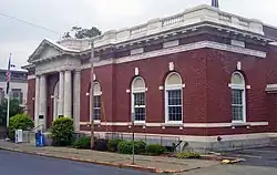 - Das 1911 erbaute U.S. Post Office aus Backsteinen an 402 Union Street ist eines von zwölf Postämtern im Bundesstaat New York, das von James Knox Taylor, dem Chefarchitekten des US-Finanzministeriums, zu Beginn des 20. Jahrhunderts projektiert wurde. Es war Taylor, der begonnen hatte, klassische Verzierungselemente mit dem bei Postämtern bevorzugten Stil des Colonial Revival zu kombinieren. In Hudson verwendete er zwei römisch-inspirierte Portika, die denen des Courthouses auf der gegenüberliegenden Seite des Platzes ähnelten.[7] Das Postamt war 1988 mit einer Reihe weiterer Postämter in New York Gegenstand einer Multiple Property Submission.