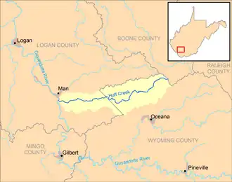 Huff Creek ist ein 34 km langer Nebenfluss des Guyandotte River[3] im Südwesten des US-Bundesstaates West Virginia. Über den Guyandotte River und den Ohio River gehört er zum Einzugsgebiet des Mississippi River und entwässert ein Gebiet mit einer Größe von 130 km2[4] in einem ländlichen Gebiet des Allegheny-Plateaus, das nicht vergletschert war.