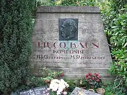Hugo Kaun starb 1932 im Alter von 69 Jahren in Berlin. Er ist auf dem Friedhof Zehlendorf bestattet (Feld 017-524). Am Grabstein befindet sich ein Bronzerelief mit einem Porträt Kauns im Profil.[1]