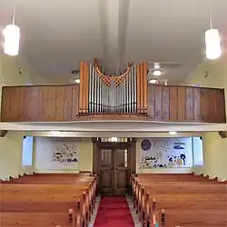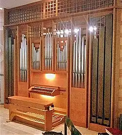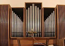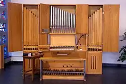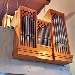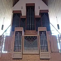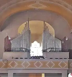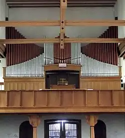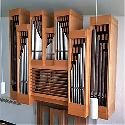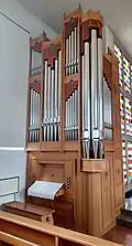 III/P | 6 | Baugleich mit vorangehender Orgel, einziger Unterschied: Subbass 16' im Pedal und Metallpfeifen im Prospekt. |