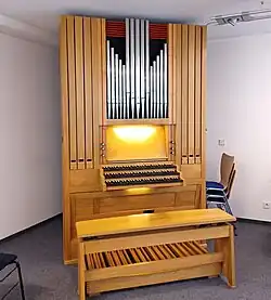 II/P | 21 | Technischer Neubau unter Verwendung sämtlicher Pfeifen und der Windladen aus der ehemaligen Zimnol-Orgel der Christkönig-Kirche Kaiserslautern. Opusnummer 414 |