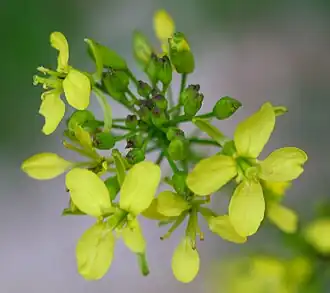 Die zwittrigen Blüten sind vierzählig. Die Farbe der vier Blütenkronblätter reicht von kräftigem gelb über hellgelb bis weiß und zu grünlich. Der Griffel endet in einer kopfigen oder zweiästigen Narbe. Es werden meist vierkantige Schoten mit zwei gekielten Klappen ausgebildet, in denen die eiförmigen bis länglichen Samen einreihig angeordnet sind.[1]