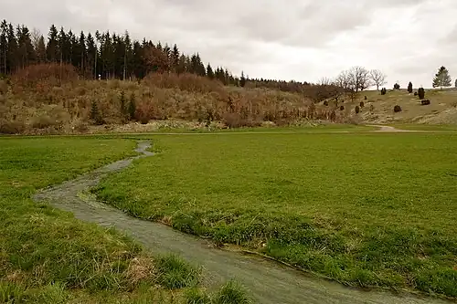 Wenn der Hungerbrunnen schüttet (Qmax 1939: 700, 1957: 40 l/s),[3] versickert sein Wasser jedoch meistens schon nach weniger als zwei Kilometern wieder. Nur bei anhaltend großer Schüttung erreicht das Wasser die Mündung ins Lonetal. Es gibt nur drei kleine, unbedeutende, ebenfalls trockene Seitentäler. Heutzutage fließt allenfalls Wasser aus den Kläranlagen der nördlich liegenden Orte zu.