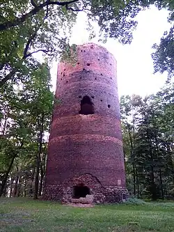 Der Turm stand frei auf der Burgfläche von etwa 1200 m², mit einem Durchmesser von 11 m und einer Höhe von 22,5 m.