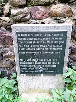 Der aus Backsteinen errichtete Rundbau war ein Teil der vormaligen Burganlage, die von Herzog Konrad I. von Glogau errichtet wurde.[1] Die Bezeichnung „Hungerturm“ geht darauf zurück, dass der Saganer Herzog Johann II. seinen Bruder Balthasar in dem Turm gefangen hielt, wo dieser am 15. Juli 1472 starb.