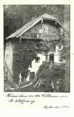 Die Hupfmühle steht in der zu beiden Seiten bewaldeten Schlucht des Ditlbachs zum nahen Wolfgangsee.