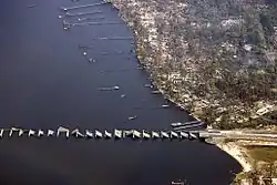 Eine zerstörte Brücke aus der Air Force One betrachtet