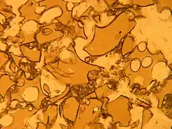 Die Glasfragmente sind in der Regel umgeben von einer gelben oder braunen Schicht von Palagonit, das bei der Reaktion von Sideromelan mit Wasser entsteht.