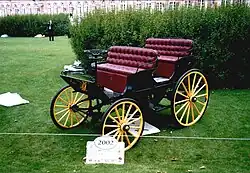 Lohner-Porsche „Mixte“ (ca. 1902) Hybridfahrzeug mit Verbrennungsmotor der Daimler-Motoren-Gesellschaft; vorne zwei Radnabenmotoren je 1,5 kW; bis 50 km/h