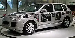 Ein Hybridelektrokraftfahrzeug (englisch Hybrid Electric Vehicle, HEV), gemäß EU-Richtlinie[1] kurz Hybridelektrofahrzeug, umgangssprachlich auch Hybridfahrzeug oder Hybridauto, akademisch Fahrzeug mit Hybridantrieb oder aber auch Fahrzeug mit Hybridmotor, ist ein Elektrofahrzeug, das von mindestens einem Elektromotor sowie einem weiteren Energiewandler angetrieben wird und Energie sowohl aus seinem elektrischen Speicher (Akku) als auch einem zusätzlich mitgeführten Kraftstoff bezieht.[2]